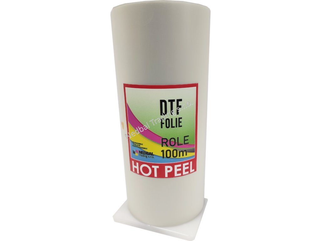 VÝROBOK S NOVÝM POVRCHOM, ktorý umožňuje zalisovať výtlačky od cca 120 °C, použiteľný na syntetiku, bavlnu a iné materiály. Rolka folie DTF, šírka 30cm, návin 100m. HOT PEEL -...