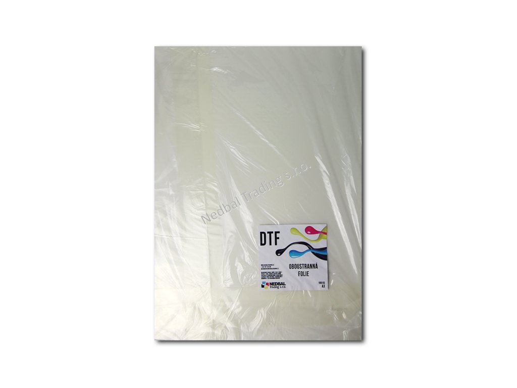 Transferové fólie obojstranné veľkosti A3 určené na prenos tlače atramentmi DTF (Direct To Film) na textil.