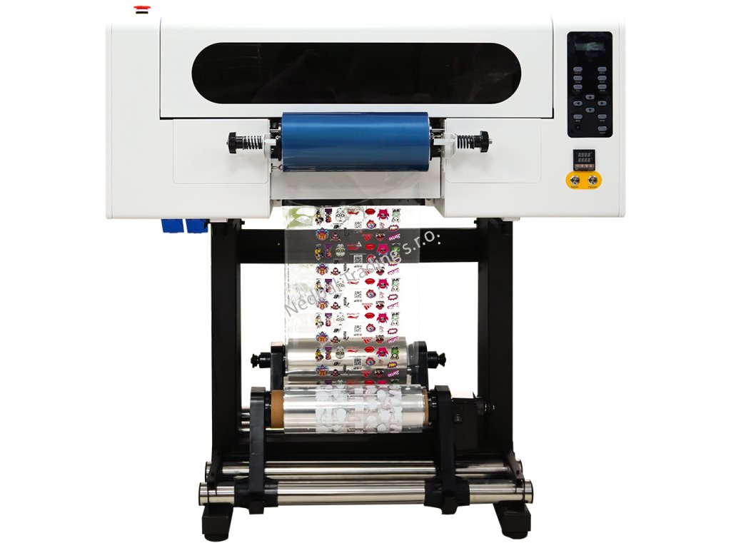 Táto tlačiareň je určená na potlač UV DTF fólií systému AB. Obsahuje tri tlačové hlavy Epson i1600-U1 vďaka ktorým môže ponúknuť vynikajúcu kvalitu tlače a súčasne skvelú rýchlosť. Jedna tlačová hlava tlačí farby CMYK, druhá tlačová hlava tlačí bielu a tretí lak. Je dodávaná vrátane kvalitného stojana a systému laminácie fóliou AB. Atramenty sú vysoko odolné voči UV žiareniu. UV DTF tlač je možné použiť na širokú škálu materiálov, vrátane plastov, kovov, dreva, skla, keramiky a ďalších.